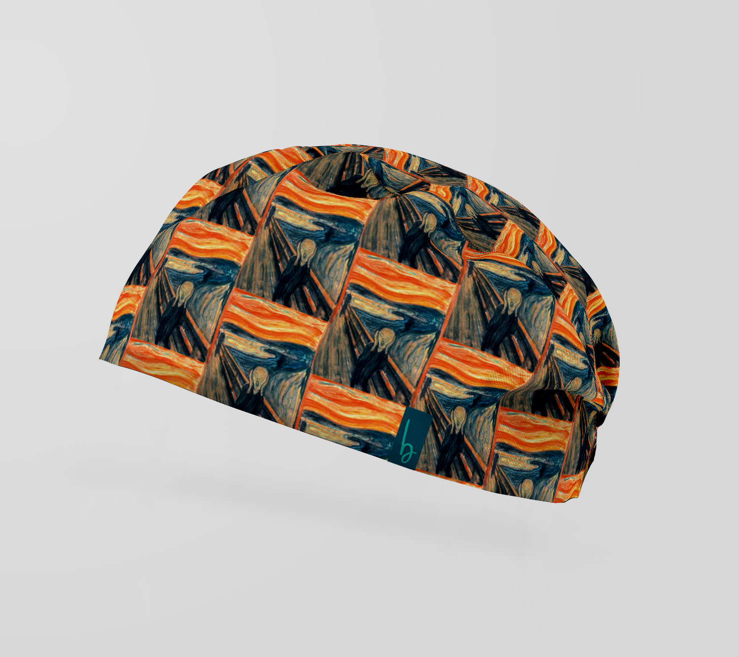 Gorro quirúrgico inspirado en El Grito de Munch. Emoción, color y estilo en una sola pieza.