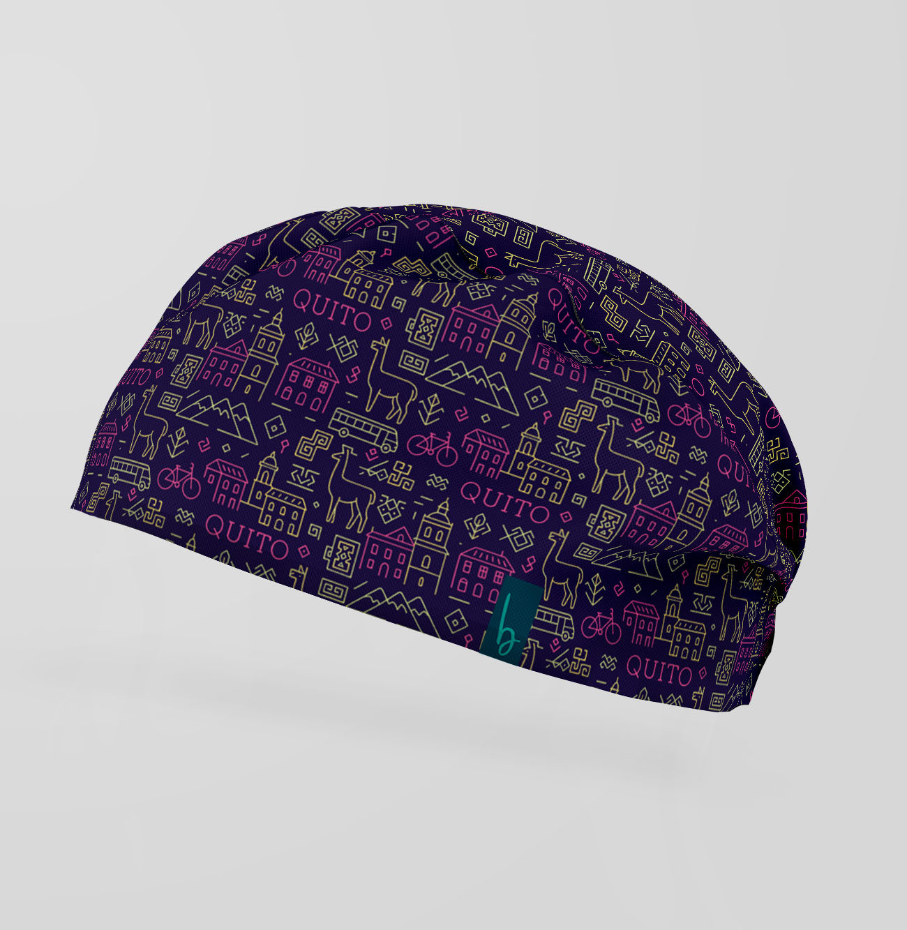 Luce la esencia de la capital en cada jornada con este gorro quirúrgico inspirado en la magia de Quito. Su diseño artístico recrea íconos de la ciudad —sus iglesias, plazas y paisajes andinos— en un estilo de trazos de colores vivos, que llenan de energía y alegría tu día a día.